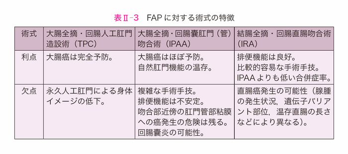 - 女性のFAPに対する大腸全摘術は妊孕性が低下する可能性がある(サイドメモⅡ-4:手術と妊孕性・妊娠・出産)。