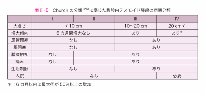 - 予防的大腸切除時に腸間膜内にデスモイド腫瘍を認める場合には,デスモイド腫瘍の再発・増大や技術的な問題からIPAAは一般的に推奨されないが,一定の条件のもとでは許容される。(Ⅱ-3-4:デスモイド腫瘍)なお,特にIRAでは腹腔鏡下手術のほうが,術後デスモイド腫瘍の発生が少ないという報告がある53,54)。