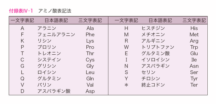 | (4) | 蛋白質レベルの記載は「p.」で表し,翻訳開始のメチオニンを1として数える。アミノ酸表記は3文字表記,1文字表記いずれでもよい(付録表Ⅳ-1)。 |