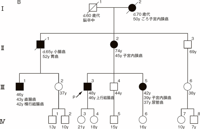 図Ⅲ-2 Amsterdam基準Ⅱ49)に合致する家族歴(付録:家系図の記載法参照)