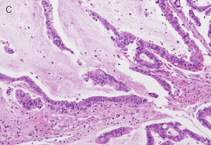 | C: | 粘液癌。多量の細胞外粘液を伴う。 |