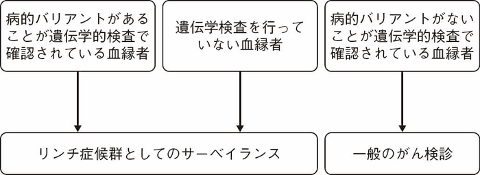 - これらの原因遺伝子のいずれかに生殖細胞系列病的バリアントが同定された場合にリンチ症候群と診断される。
